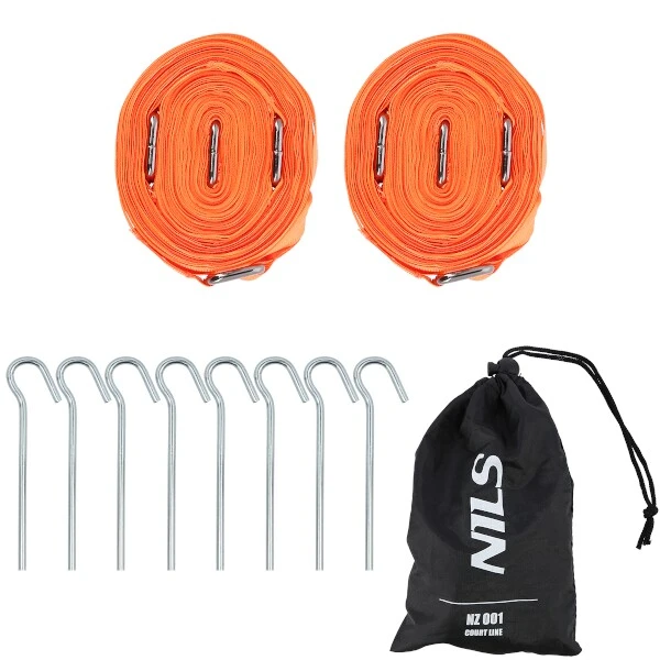 NILS NZ001 je kompletní sada pro vyznačení hrací plochy o dvou čtvercích se stranou 5,5 metru. Sada obsahuje 2 popruhy, 8 kolíků a pytlíček pro pohodné uskladnění a přenášení.