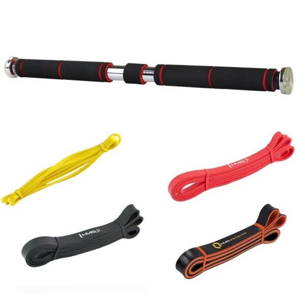 Představujeme sadu kombinující hrazdu do dveří HMS DD02 v kompletu s odporovými gumami. Taková kombinace poskytuje mnoho možností cvičení. Gumy lze použít pro základní trénink, rozcvičení, rehabilitaci a také jako pomůcku pro odlehčení zátěže při některých cvicích. Jedním z těchto cviků je přítah na hrazdě. Atraktivní možnost pro ty, kteří začínají s tréninkem. U pokročilých jedinců se manévr s gumovým expandérem osvědčí v závěrečné sérii, kdy již potřebujete snížit zátěž. Gumová páska natažená přes kolena nebo chodidla částečně odlehčí svalům a umožní vám soustředit se na správnou techniku. I začátečníci, kteří se doposavad nedokázali přitáhnout k hrazdě, to teď zvládnou na jedničku.