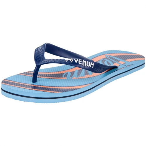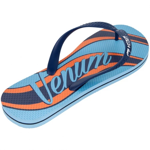Žabky VENUM CUTBACK - modro/oranžovéPevné a barevné!!!! Tyto žabky budou chránit Vaše nohy během výletů na pláži i u bazénu. Žabky jsou velmi pohodlné!!!Vlastnosti produktu:- Top: 100% PVC.- Podrážka: 100% kaučuk.- Tenké gumové pásky.- Lehká a voděodolná.- Venum logo.VENUM