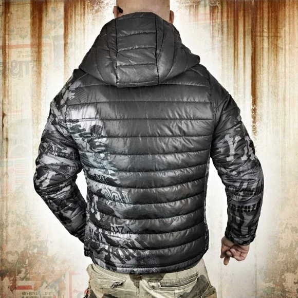 Yakuza Bunda ALL OVER - tmavě šedáYakuza bunda ALL OVER tmavě šedé barvě. Pánská lehká prošitá bunda má kapuci s nastavitelnou šňůrkou, manžety, 2 boční kapsy a vnitřní kapsu. Tato bunda je vhodná do chladnějšího období a má zapínání na zip. YAKUZA bunda má kožený šťítek na bočním švu.Při volbě velikosti se prosím řiďte tabulkou s rozměry bundy dole níže, velikosti jsou asi o jedno číslo menší. Model je 1,82 cm vysoký a nosí velikost XL.Materiál : 100% PolyesterRozměry bundy:Velikost Šírka v pase(cm) Šířka hrudníka (cm) Délka (cm) Délka rukávů (cm)S 52 56 66 69M 54 58 68 70L 56 60 70 71XL 58 62 72 722XL 60 64 74 733XL 62 66 76 74YAKUZA
