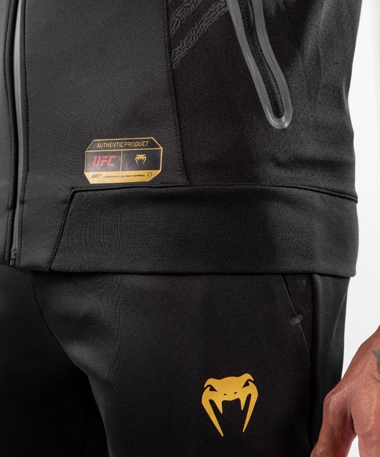 Mikina VENUM UFC Authentic Fight Night Walkout - ChampionMikiny Venum Fight Night Walkout jsou výsledkem exkluzivní spolupráce mezi dvěma historickými symboly MMA, Venum a UFC. Mikiny Fight Night jsou pohodlné a obsahují detaily navržené tak, aby vyhovovaly potřebám sportovců světové úrovně. Tkanina je lehká a prodyšná, přesto zůstává mírně pružná a nabízí maximální pohodlí a svobodu pohybu. Rukávy jsou nastavitelné, aby si sportovci mohli nasadit a sundat mikinu s rukavicemi MMA.Série Fight Night je hlavní řadou kolekce VENUM x UFC. Tyto elegantní oblečení budou bojovníci nosit během všech akcí UFC.Technické parametry:• materiál: 95% polyester / 5% elastan• Bi-materiál: Polyester Spandex + síťovina• Nepromokavé zipy• 3D hedvábně loga• Zipy na rukávech: nastavitelné pro rukavice MMA• Nežehlit, Nesušte v sušičceVENUM