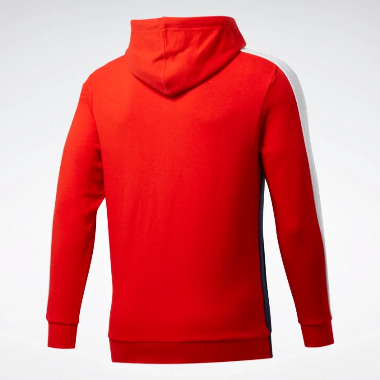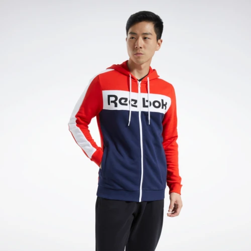 REEBOK Pánská mikina Training Essentials Logo Pánská mikina REEBOK v červeno modro bílé barvě. Tato mikina REEBOK je vyrobena z kvalitního materiálu, díky tomu je ideální volbou na fitness. Froté mikina se zipem s obšitými manžetami a lemem. Mikina velmi dobře izoluje teplo u pokožky. Měkká a pohodlná froté mikina je ideální pro každodenní nošení.Vlastnosti produktu:- 80% bavlna / 20% polyester froté- Kapuce a 2 kapsy- Měkká a pohodlná- LOGOReebok