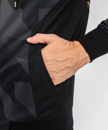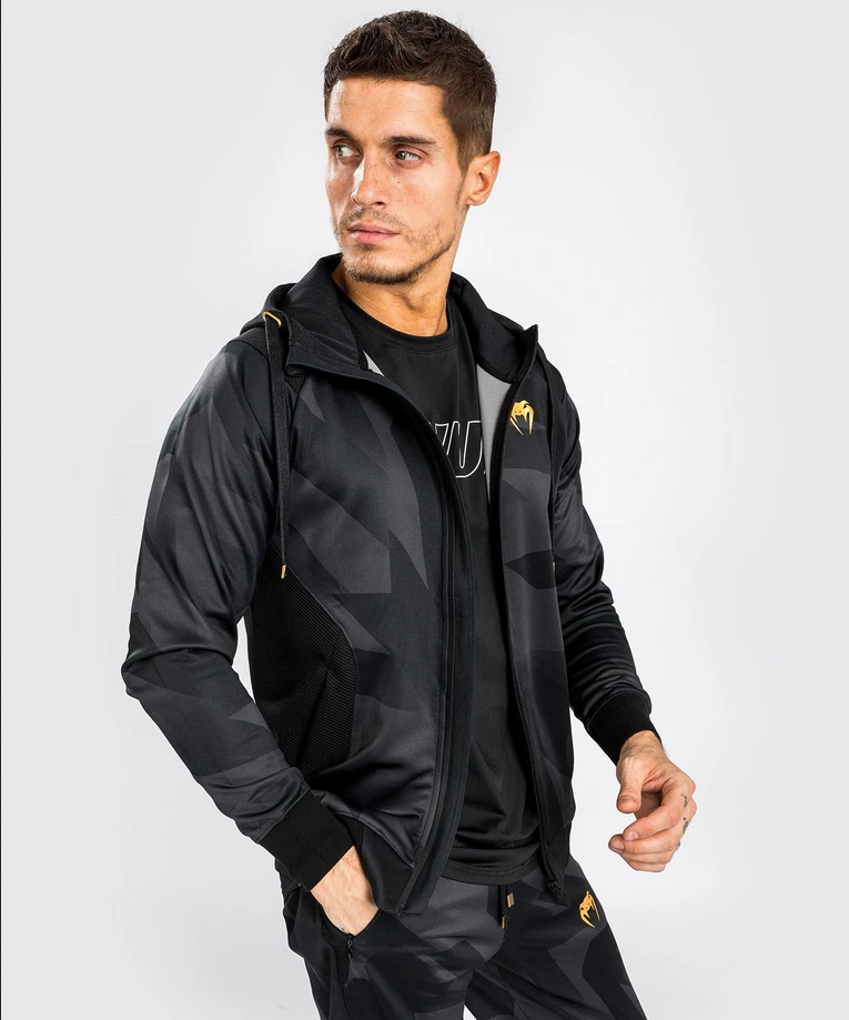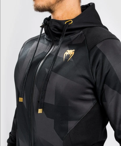 Pánská mikina VENUM Razor - černo/zlatéPánská mikina VENUM Razor v černo zlaté barvě. Pánská mikina VENUM Razor je na zips kapucí. Je vyrobena z měkké a pružné tkaniny a je navržena tak, aby vám poskytovala volnost pohybu. Vlastnosti produktu:- Vložka ze síťoviny- Kapuce se stahovací šňůrkou- Přední zip- Lehká a pružná tkanina- Boční kapsy se zipy- Přiléhavý střih- Sítotiskem vytištěné logo- Sublimované vzory- Praní na 30°VENUM