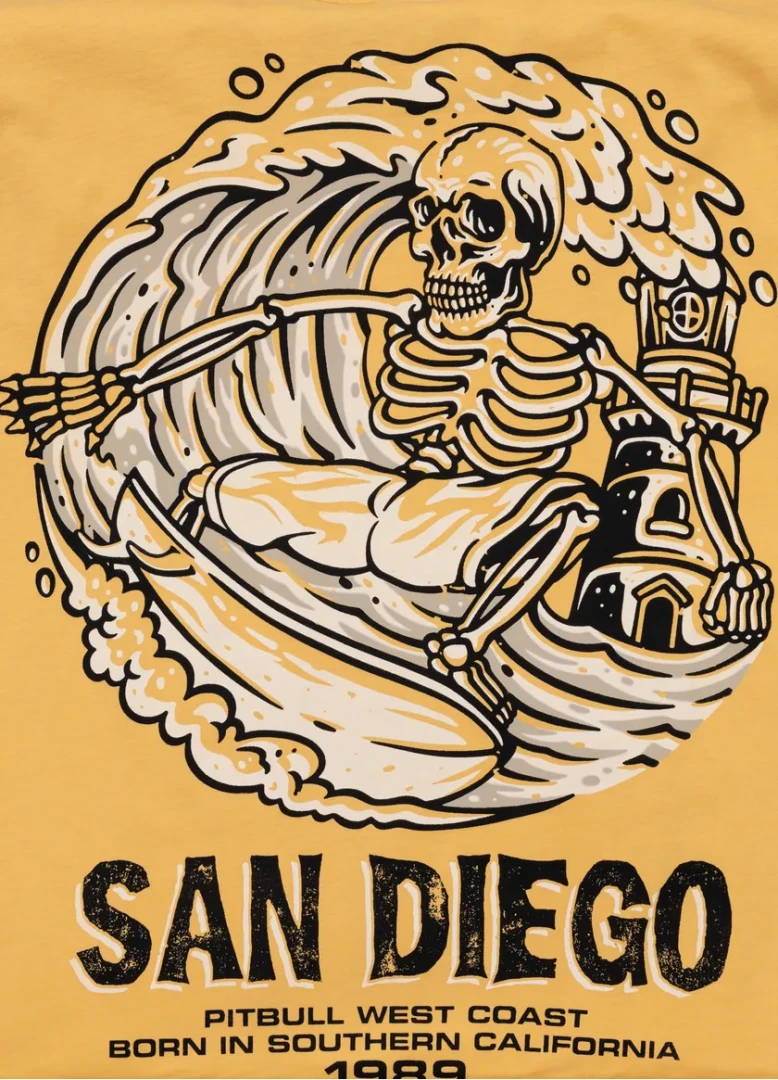 PitBull West Coast Triko SKULL SURF - žlutéPánské tričko z kolekce PitBull West Coast Denim Washed SKULL SURF s logem na hrudi a na zádech. Klasický pohodlný střih s kulatým výstřihem a bavlna o gramáži 170 g/m2. Potisky jsou dělané velmi kvalitně sítotiskem a dlouho vydrží. - velká tkaná nášivka s logem PITBULL WEST COAST ve spodní části trička a malá tkaná nášivka na okraji levého rukávu.- pravidelný, pohodlný střih- Tričko je vyrobeno z vysoce kvalitní bavlněné tkaniny o gramáži 170 g/m2.- kulatý výstřih s lemováním na vnitřní straně- velký potisk na zádech- malý potisk PITBULL na hrudi- velká nášivka na spodním lemu- malá nášivka na okraji levého rukávu- složení materiálu: Materiál: 100% bavlnaPitbull West Coast