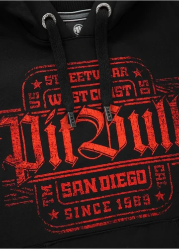 PitBull West Coast Pánská mikina s kapucí SAN DIEGO IV - černá Mikina s kapucí SAN DIEGO IV je vyrobená z bavlny s gramáží 400g/m2. Kulatý výstřih z vnitřní strany je lemovaný úpletem, který zaručuje pohodlné nošení. Kapuce lze stáhnout pomocí tkanic. Na přední straně čevený nápis Pitbull. Na zadní straně celoplošná grafika. Složení: 80% bavlna, 20% polyester.PitBull West Coast