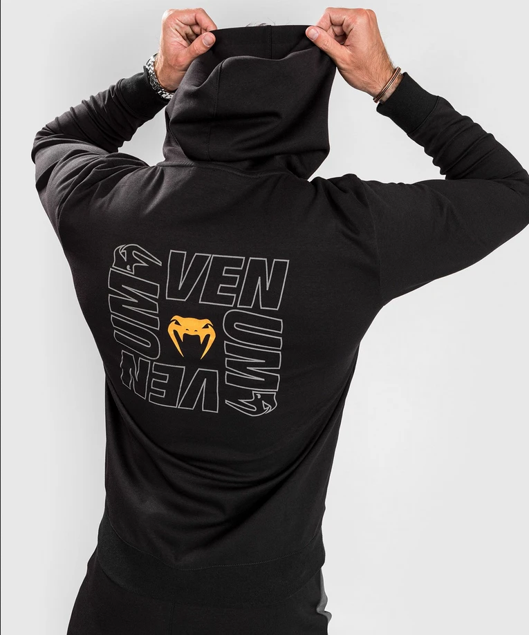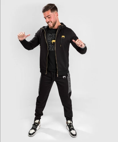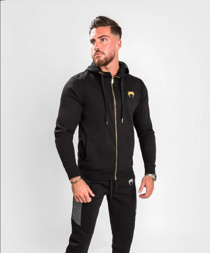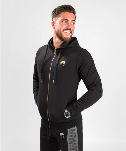 Mikina VENUM ARENA na zip - černáVystup z davu v mikině Venum Arena. Mikina VENUM ARENA na zip V černé barvě. Tato prémiová mikina je vyrobena ze 100% bavlny a má zlaté detaily na zipu a motivu loga na zádech. Technické parametry:• Složení: Složení: 100% bavlna,• Mikina se stahovací šňůrkou,• Otevřené boční kapsy,• Nežehlit, Nesušte v sušičceVENUM
