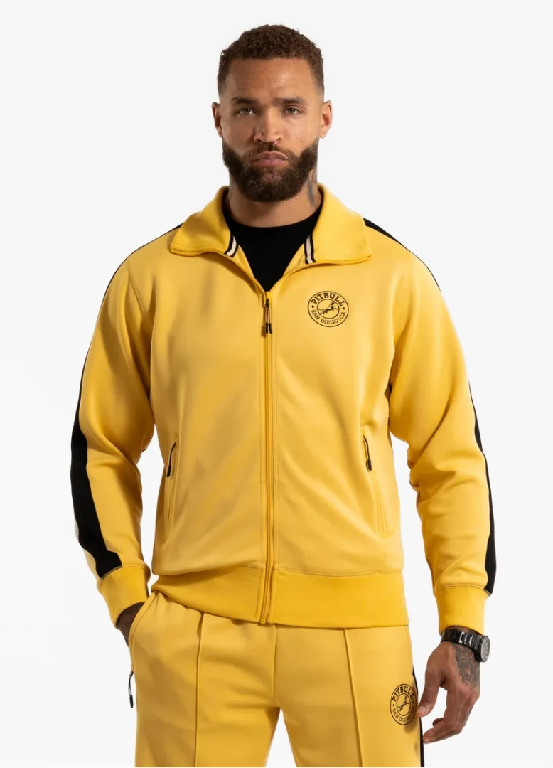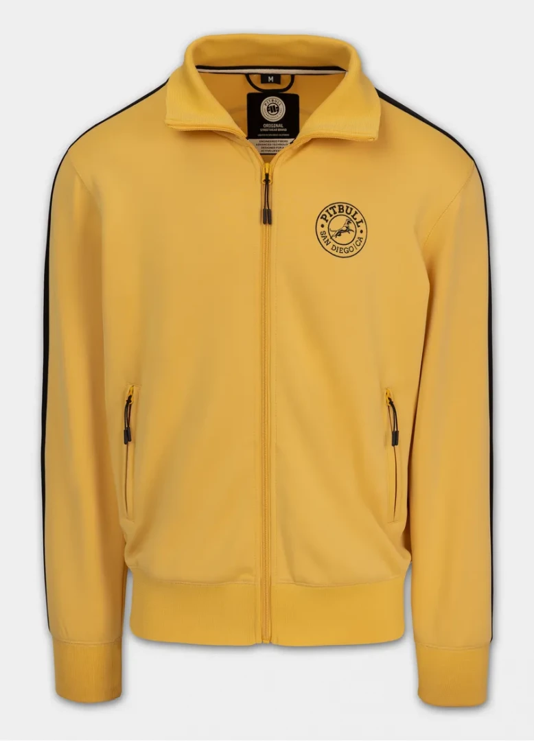 PitBull West Coast Pánska mikina SAN DIEGO CA - žlutáPánská mikina s kapucí z kolekce od PIT BULL WEST COAST - SAN DIEGO CA. Mikina je vyrobena z vysoce kvalitní polyesterové tkaniny o gramáži 320 g/m2.- pravidelný, pohodlný střih- z vysoce kvalitní polyesterové tkaniny o gramáži 320 g/m2.- hladký a zároveň matný materiál ze staré školy- díky použití syntetických vláken si mikina zachovává svůj střih i po mnoha vypráních- široké, žebrované, robustní žebrování na rukávech a spodním lemu- vysoký žebrovaný límec- otevřené kapsy na ruce- kontrastní lemování po celé délce rukávů- velký potisk na zádech- malý potisk na hrudi- ke spojení látek byly použity švy Autolap, které jsou ploché a odolné proti roztržení.- složení materiálu: 92 % polyester / 8 % elastanPitBull West Coast