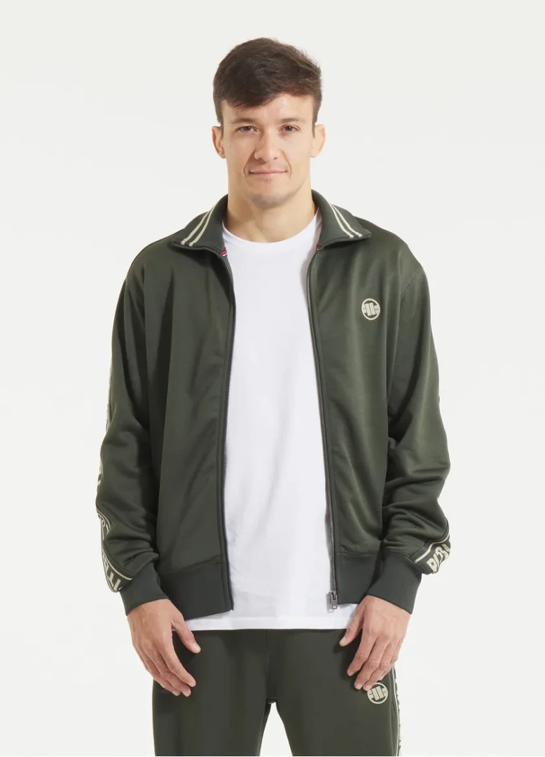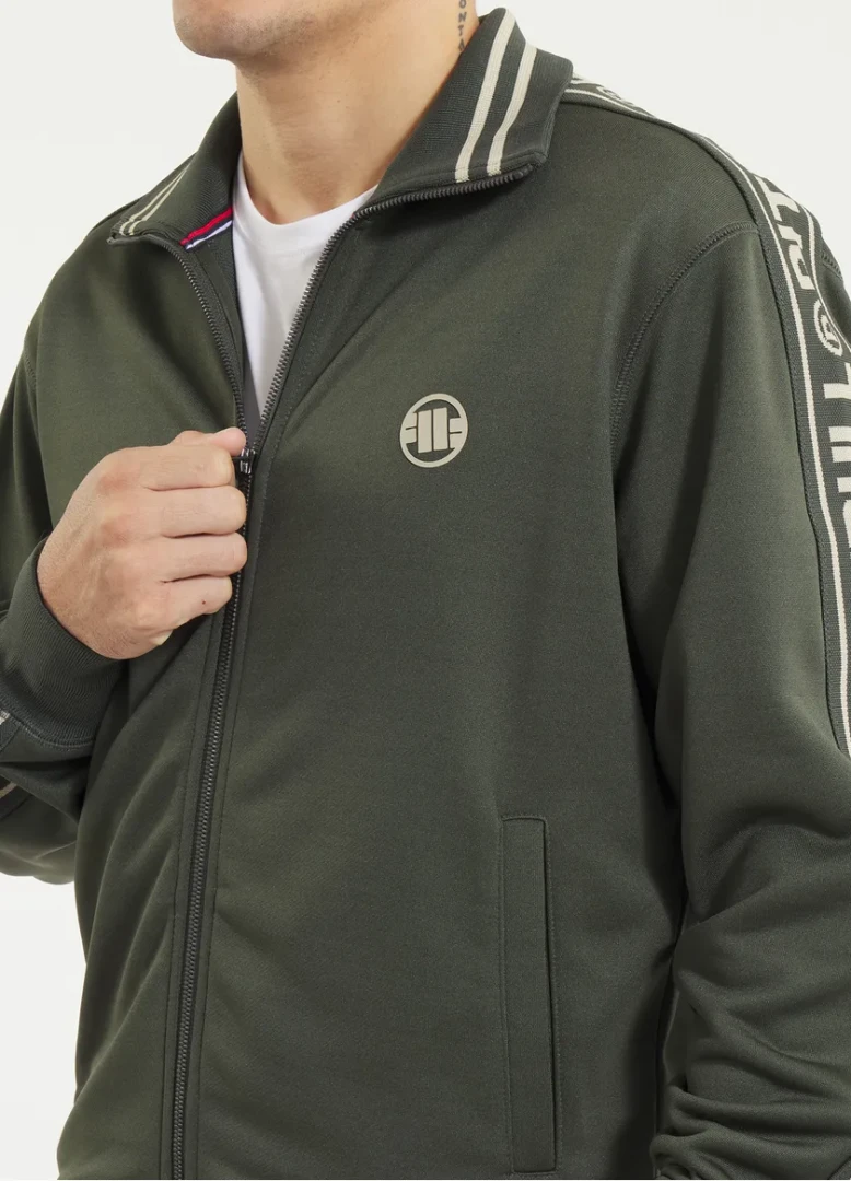 PitBull West Coast Pánska mikina Tape Logo Terry - zelenáPánská mikina s kapucí z kolekce od PIT BULL WEST COAST - Tape Logo. Mikina je vyrobena z vysoce kvalitní polyesterové tkaniny o gramáži 320 g/m2.- pravidelný, pohodlný střih- vyrobeno z kvalitní polyesterové tkaniny o gramáži 320 g/m2- hladký a matný materiál ve stylu staré školy- díky použití syntetických vláken si mikina zachovává svůj tvar i po mnoha vyprání- široké, žebrované, silné manžety na rukávech a ve spodní části mikiny- vysoký žebrovaný stojáček- kontrastní pruhy na vnitřní straně límce- otevřené kapsy na ruce- kovový zip a zip- horizontální prošívání na zádech- tkané žakárové pruhy s nápisem PitBull po celé délce rukávů- malé silikonové logo značky Pit Bull na hrudi- Autolap švy se používají ke spojení látek, které jsou ploché a odolné proti roztržení- materiálové složení: 100% polyesterPitBull West Coast