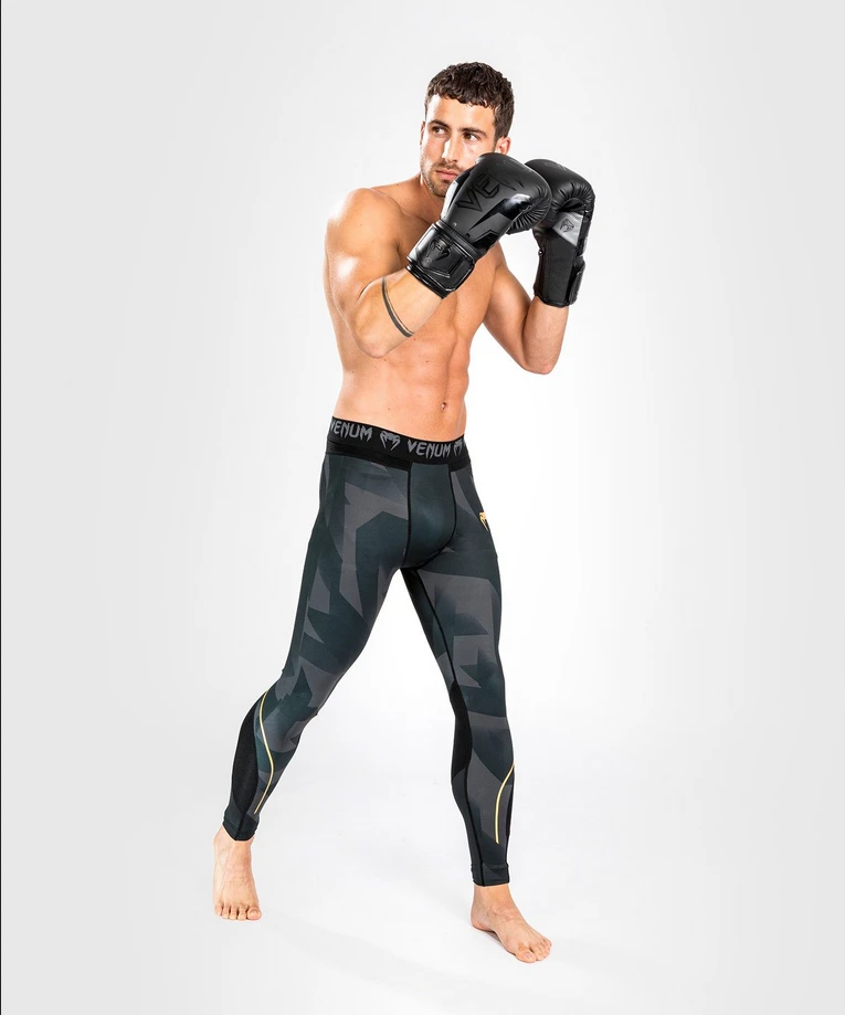 Pánské legíny VENUM Razor - černo/zlaté Pánské legíny VENUM Razor v černo zlaté barvě. Pánské legíny VENUM Razor jsou lehké a pružné a mají kompresní systém, který působí po celé ploše. Legíny Spat Razor jsou nezbytné pro váš trénink grapplingu, BJJ nebo dokonce kulturistiky.Vlastnosti produktu:- Lehká a pružná tkanina- Místo pro vložení ochrany- kompresní systém- Zesílené švy- Ideální pro trénink BJJ, sparingu a grapplingu- Sítotiskový potisk loga- Praní na 30°VENUM