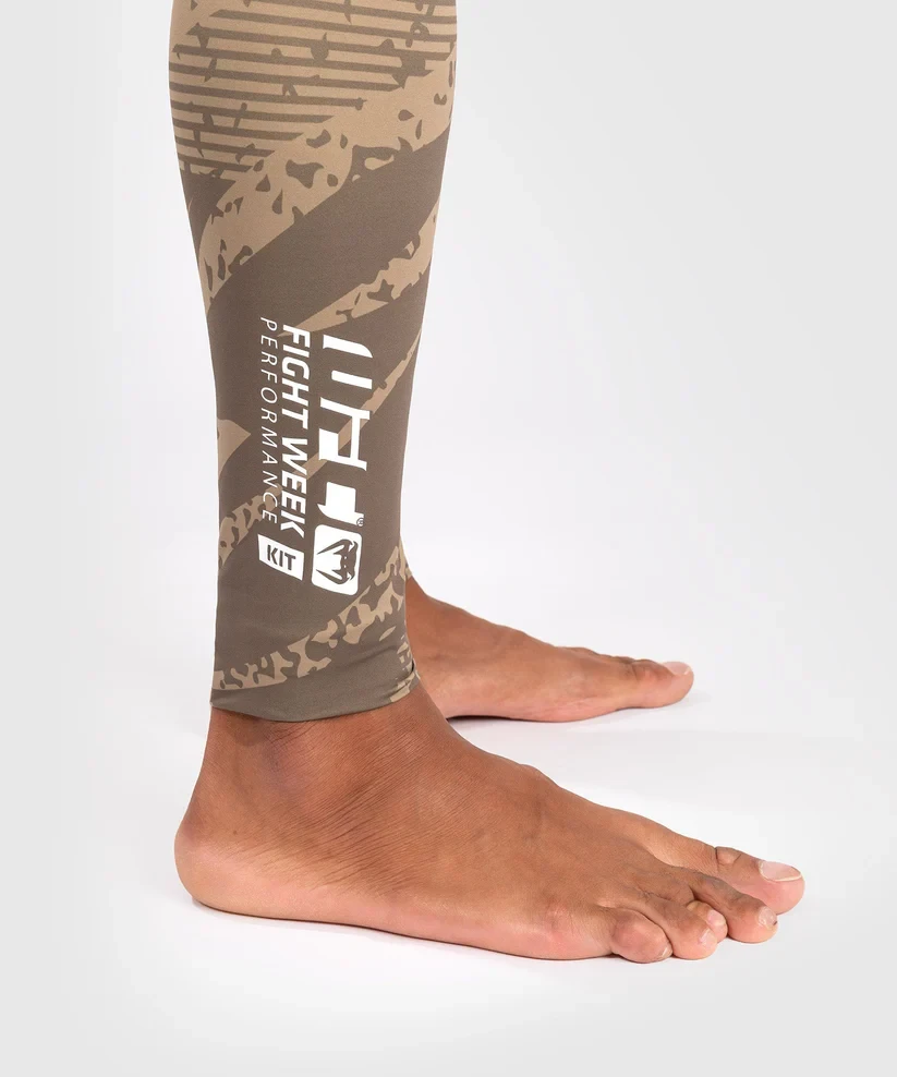 Kompresní legíny UFC Adrenaline by Venum Fight Week Performance - desert Camo Kolekce UFC Adrenaline by Venum se vyznačuje odolnými výkonnostními materiály a promyšlenými detaily, aby udržela krok se soutěžícími sportovci UFC. Kompresní legíny UFC Adrenaline by Venum Fight Week Performance jsou vyrobeny z kvalitního materiálu. Odvážný maskáčový potisk s černobílými detaily loga Venum a UFC. - Tkanina: Materiál: 75 % polyester - 25 % elastan- Kompresní materiál- Zesílené švy- Sítotisk loga- Praní v chladu / 30ºc- Nesušit v sušičce- Nežehlit VENUM
