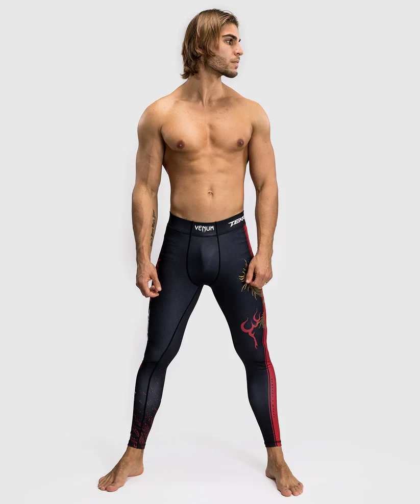 Kompresní legíny Venum x Tekken 8 - Marshall Law - černo/červeno/zlatéKompresní legíny Venum x Tekken 8 Marshall Law „The Legendary Dragon“, bojovník smíšených bojových umění Marshall Law a jeho zlatý drak z ikonické hry Tekken. Legíny mají potisk loga Venum na přední straně. boční stranu zdobí potisk ikonického zlatého draka z Marshallova oblečení s dynamickou grafikou a logy Venum a Tekken. Text na holeni říká: „When boldness is within / When the pressure is on / Reveal who you are / Adrenaline Inside.“ Legíny Venum x Tekken 8 Marshall Law Spats jsou navrženy tak, aby chránily před odřeninami při práci na tatami při grapplingu, BJJ a MMA. Kompresní střih poskytuje svalovou podporu a může pomoci při zvýšení regenerace. Vložky ze síťoviny umožňují rychlý odvod potu. - Elastický pásek,- Zesílené švy,- Ideální pro BJJ, sparingy a grapplingové tréninky.- Sítotiskem vytištěné logo,- Sublimované motivy,- Vložky ze síťoviny- Praní v chladu (na 30 °C).- Perte s podobnými barvami- Nesušte v sušičce- Nežehlete.VENUM