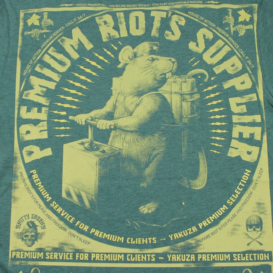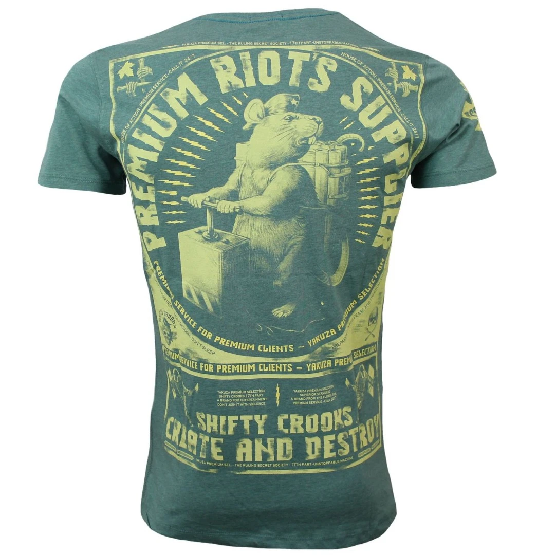Yakuza Premium Pánské tričko YPS 2913 - tyrkysovéYakuza Premium Pánské tričko YPS 2913 v tyrkysové barvě s krátkým rukávem. Yakuza Premium tričko je vyrobeno z 80% bavlna 20% polyester. Pánské tričko má vpředu kulatá malý potisk a levé straně hrudi. Na zadní straně je velký potisk s krysou a dynamitem. Směs měkké bavlny vám nabízí skvělé pohodlí.Yakuza Premium
