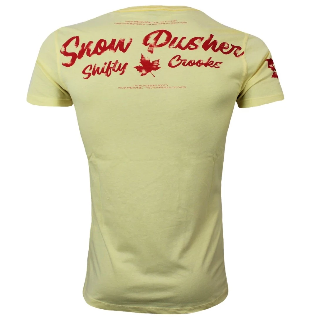 Yakuza Premium Pánské tričko YPS 2902 - světle žlutéYakuza Premium Pánské tričko YPS 2902 v žluté barvě s krátkým rukávem. Yakuza Premium tričko je vyrobeno z 80% bavlna 20% polyester. Pánské tričko má vpředu velký potisk, je zobrazena kachna. Na zadní straně je v horní části také nápis Snow Pusher. Směs měkké bavlny vám nabízí skvělé pohodlí.Yakuza Premium