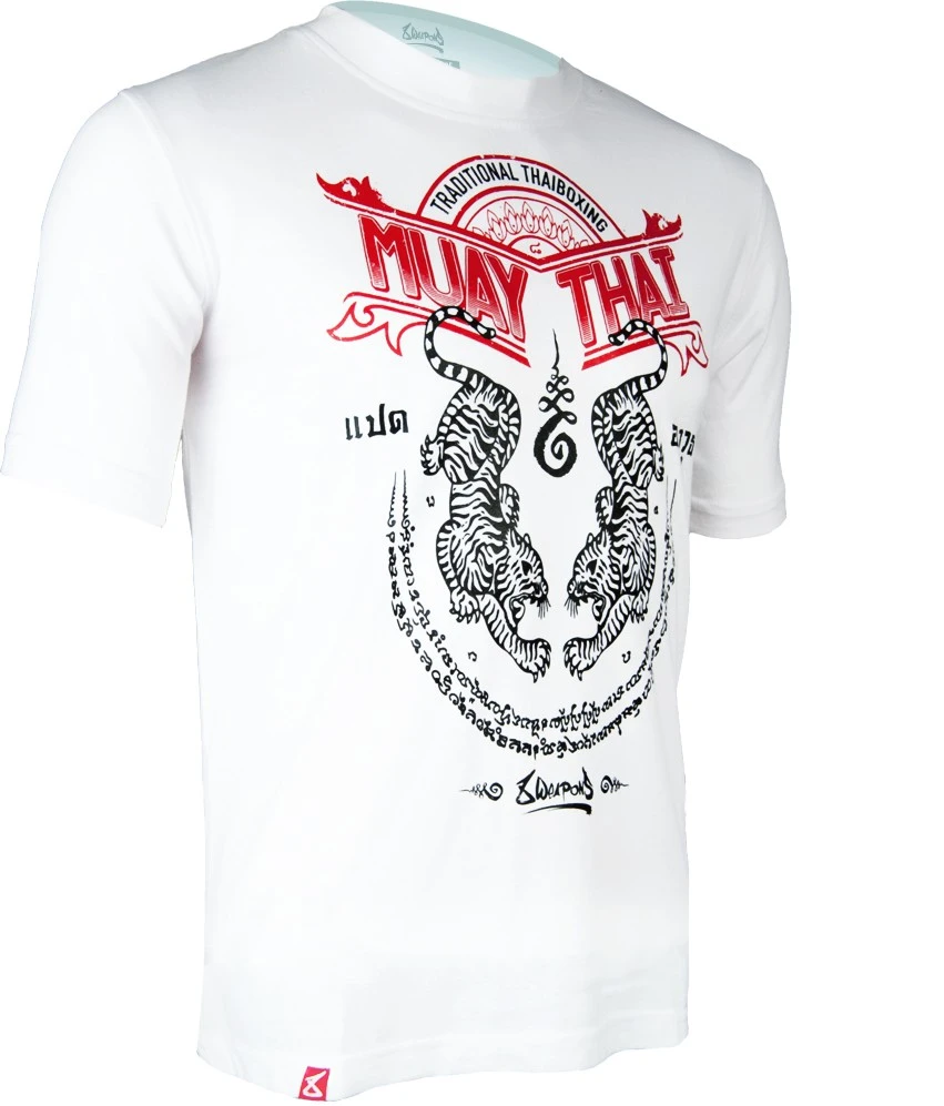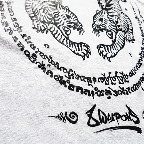 Pánské Muay Thai tričko 8 weapons SAK YANT TIGERS - bíléZnačka 8 weapons specializující se na módu a vybavení pro bojovníky Muay Thai. Harmonická kombinace barev a výrazný design trička tě skutečně upoutá. Pánské MUAY Thai tričko Sak Yant v bílé barvě. Muay Thai tričko od značky 8weapons je vyrobeno ze 100 % bavlny, je velice příjemné na nošení. Design trička symbolizuje tradiční thajské tetování a tygři který jsou nositelem síly. 8 WEAPONS
