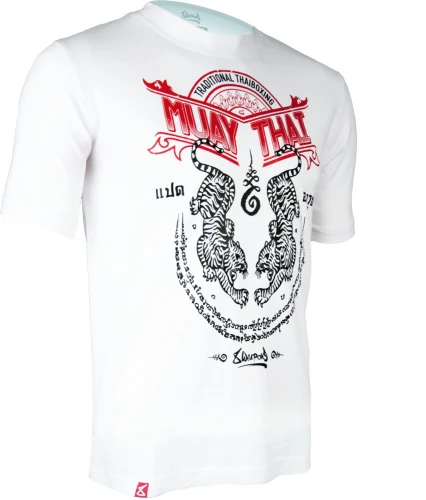 Pánské Muay Thai tričko 8 weapons SAK YANT TIGERS - bílé