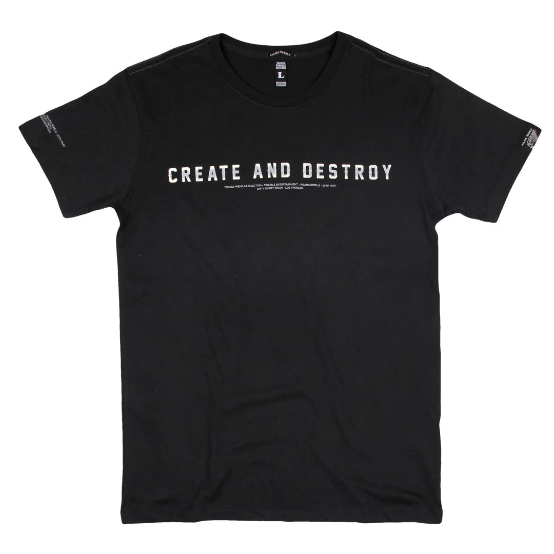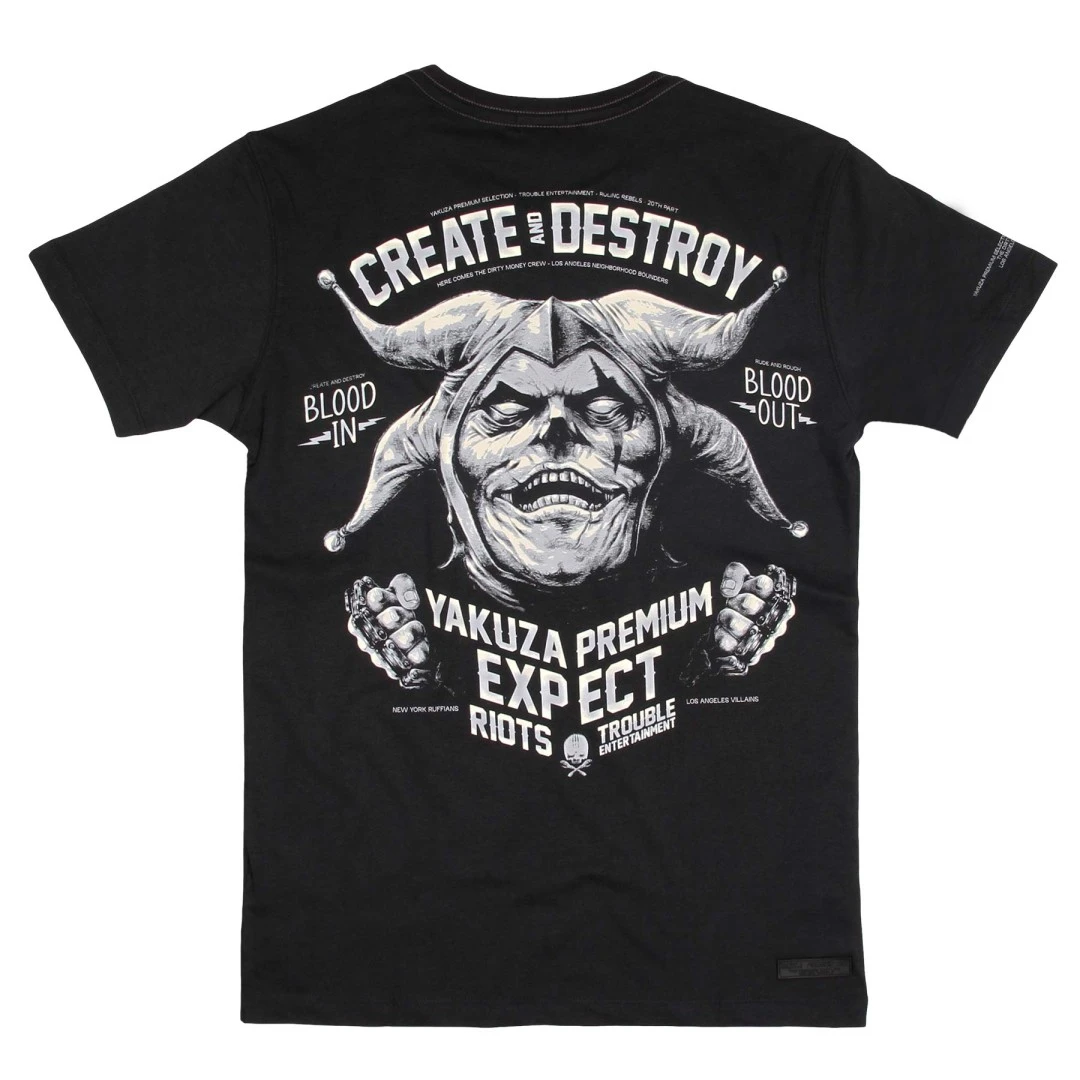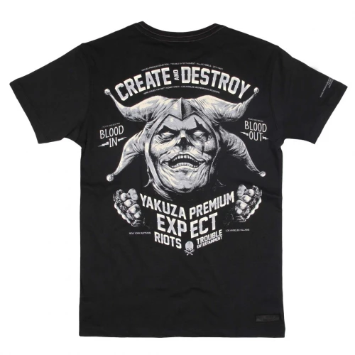 Yakuza Premium pánské tričko YPS 3214 - černéYakuza Premium pánské tričko YPS 3214 v černé barvě s krátkým rukávem. Pánské tričko Yakuza Premium má v předu potisk a na zadní straně trička najdete nápis CREATE DESTROY. Směs prvotřídní bavlny vám nabízí skvělé pohodlí.Tričko je vyrobeno z 80% bavlna 20% polyester.Yakuza Premium