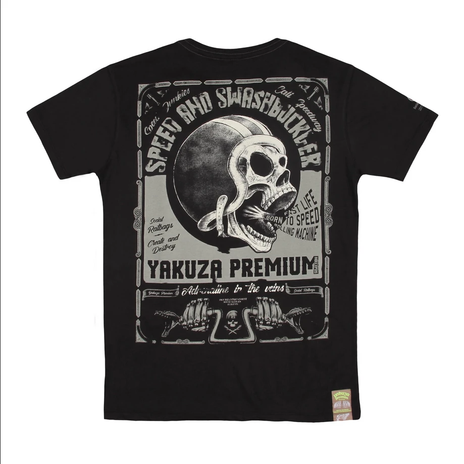 Yakuza Premium pánské tričko YPS 3310 - černéYakuza Premium pánské tričko YPS 3310 v černé barvě s krátkým rukávem. Pánské tričko Yakuza Premium má v předu potisk a na zadní straně trička najdete nápis SPEED AND SWASHBUCKLER. Směs prvotřídní bavlny vám nabízí skvělé pohodlí.Tričko je vyrobeno z 80% bavlna 20% polyester.Yakuza Premium