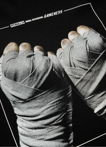 PitBull West Coast Triko Gameness MMA - černéPánské tričko z kolekce PitBull West Coast Gameness MMA s designem zabandážovaných rukou na přední straně trika. Klasický pravidelný střih s kulatým výstřihem a bavlna o gramáži 190 g/m2. Potisky jsou dělané velmi kvalitně sítotiskem a dlouho vydrží.  Tkaná nášivka s logem PITBULL WEST COAST ve spodní části trička a malá tkaná nášivka na okraji levého rukávu.- pravidelný střih s kulatým výstřihem- Tričko z nejkvalitnější bavlny 190 g/m2- měkké lemování na vnitřní straně límce, které chrání před odřením- velký potisk na přední straně- všechny potisky jsou vyrobeny speciální sítotiskovou technologií, díky níž jsou velmi odolné- velká tkaná nášivka s logem PIT BULL WEST COAST ve spodní části trička.- malá tkaná nášivka na okraji levého rukávu- složení materiálu: Materiál: 100% bavlnaPitbull West Coast