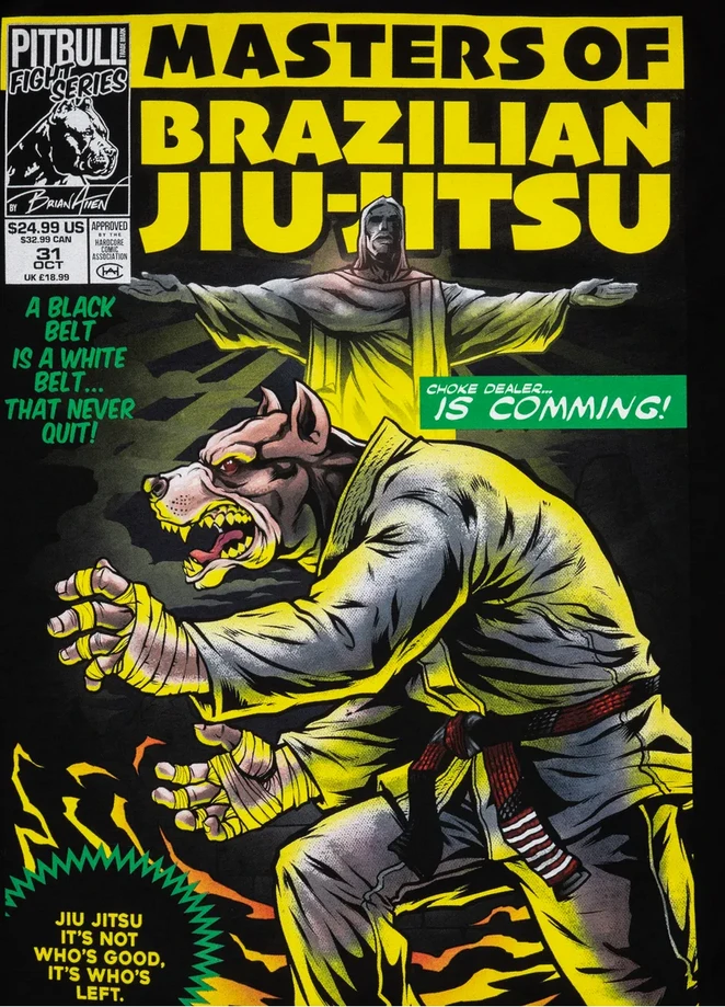 PitBull West Coast Triko Masters Of BJJ - černéPánské tričko z kolekce PitBull West Coast Masters Of BJJ s comix designem Brazilian Jiu Jitsu na zadní straně trika. Klasický pravidelný střih s kulatým výstřihem a bavlna o gramáži 190 g/m2. Potisky jsou dělané velmi kvalitně sítotiskem a dlouho vydrží. -Tkaná nášivka s logem PITBULL WEST COAST ve spodní části trička a malá tkaná nášivka na okraji levého rukávu.- materiálové složení: 100% bavlnaPitbull West Coast