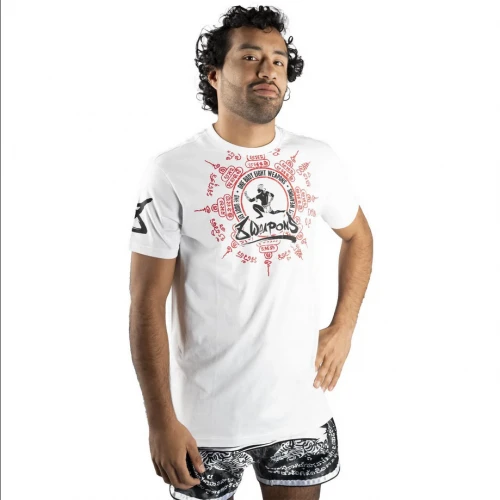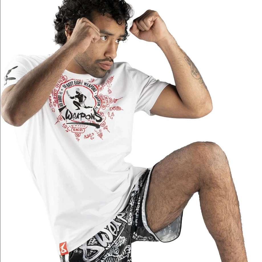 Pánské Muay Thai tričko 8 weapons Eight Ways - bíléZnačka 8 weapons specializující se na módu a vybavení pro bojovníky Muay Thai. Harmonická kombinace barev a výrazný design trička tě skutečně upoutá. Pánské MUAY Thai tričko Eight Ways v bílé barvě s motivem Thajskébo boxu. Muay Thai tričko od značky 8weapons je vyrobeno ze 100 % bavlny, je velice příjemné na nošení. 8 WEAPONS