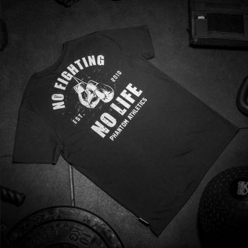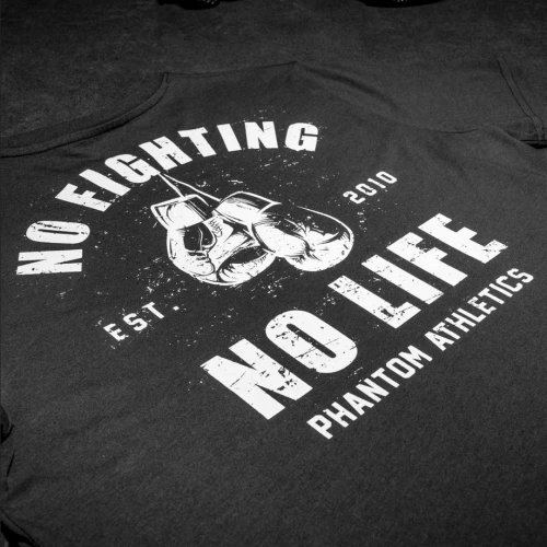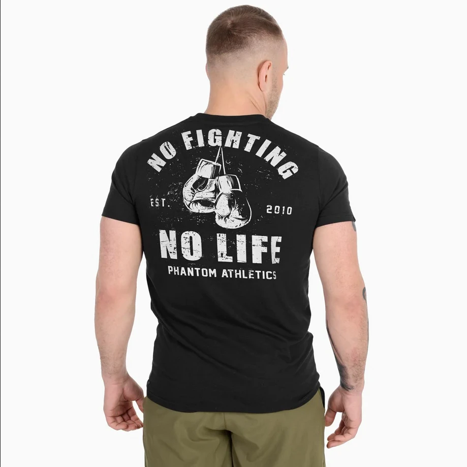 Pánské Tričko PHANTOM No Fighting / No Life - černéPohodlné tričko sportovního střihu. Pohodlná, prodyšná tkanina ze speciálního materiálu Tri-blend je lehká a je ideální pro váš příští trénink. Pásnké Tričko PHANTOM No Fighting / No Life v černé barvě vyrobené z 25% bavlna / 50% polyester / 25% viskóza. Potisk na hrudi a zádech.PHANTOM