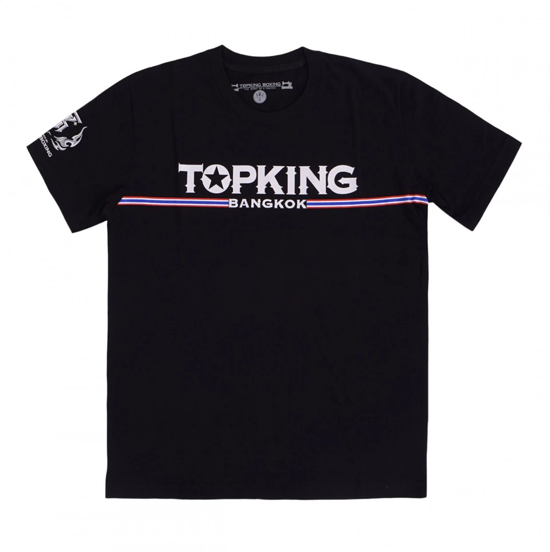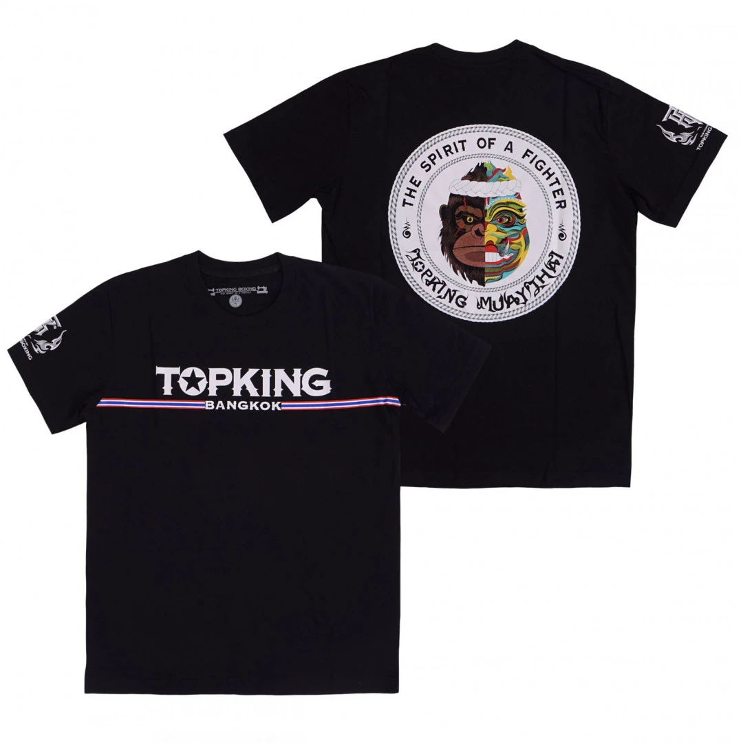 the Fighter na zadní straně a nápisem TOP KING na hrudi. Muay Thai tričko od značky TOP KING je vyrobeno ze 100 %