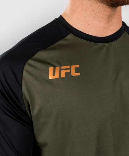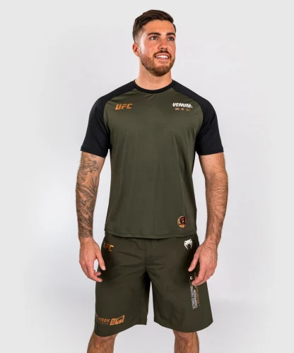 Pánské triko VENUM UFC Adrenaline Fight Week Dry-tech - khaki/bronzeKolekce UFC Fight Week je řada, kterou nosí bojovníci UFC. Funkční