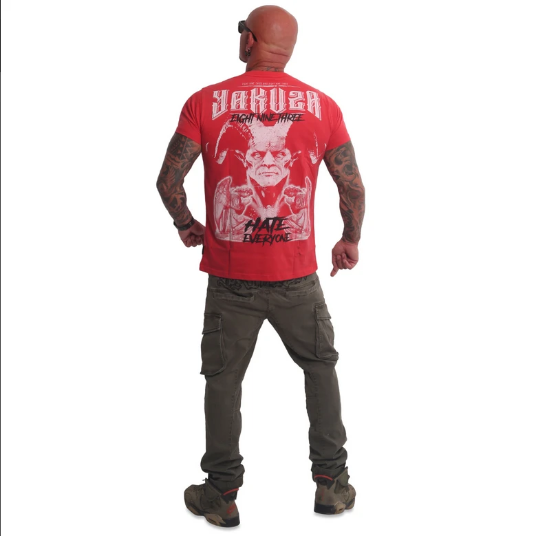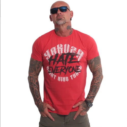 Yakuza Pánské tričko Hate - červenéPánské tričko YAKUZA Hate. Yakuza Pánské tričko Hate s krátkými rukávy je ve slim střihu s žebrovaným kulatým výstřihem. Tričko je zakončeno celoplošným potiskem a štítkem s logem Yakuza na bočním švu.- Materiál: 100% bavlna- Model je vysoký 1,82 m a nosí velikost XL.Yakuza