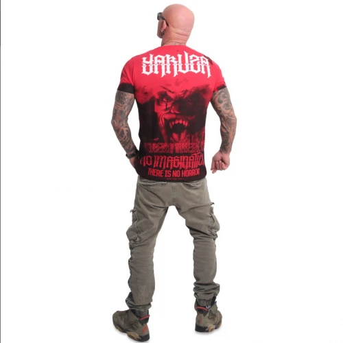 Yakuza Pánské tričko Horror Allover - červenéPánské tričko YAKUZA Horror Allover. Yakuza Pánské tričko Horror Allover s krátkými rukávy je ve slim střihu s žebrovaným kulatým výstřihem. Tričko je zakončeno celoplošným potiskem a štítkem s logem Yakuza na bočním švu.- Materiál: 100% bavlna- Model je vysoký 1,82 m a nosí velikost XL.Yakuza