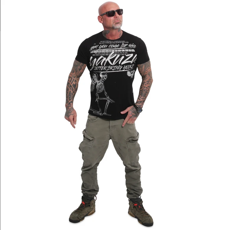 Yakuza Pánské tričko Better - černéPánské tričko YAKUZA Better. Yakuza Pánské tričko Better s krátkými rukávy má ležérní střih s krátkými rukávy a žebrovaným kulatým výstřihem. Je zakončeno grafickým potiskem a štítkem s logem Yakuza na bočním švu.- Materiál: 100% bavlna- Model je vysoký 1,82 m a nosí velikost XL.Yakuza