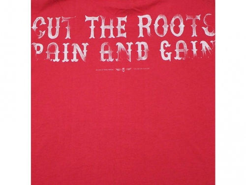 Tričko Yakuza Premium Cut the Roots – Pain and Gain dává jasný signál. Dominantní potisk na hrudi ukazuje lebku v šaškovské čepici s dýkou v ústech, zasazenou do kruhového rámu se silným nápisem Yakuza Premium Pain and Gain. Působivý motiv doplňuje detailní potisk na zádech – Cut the Roots / Pain and Gain. Stylová značka Pain & Gain s mřížemi je všitá na spodním lemu a nechybí ani decentní potisk na rukávu.Kvůli střihu přiléhajícímu k tělu je tričko trochu těsnější, proto si v