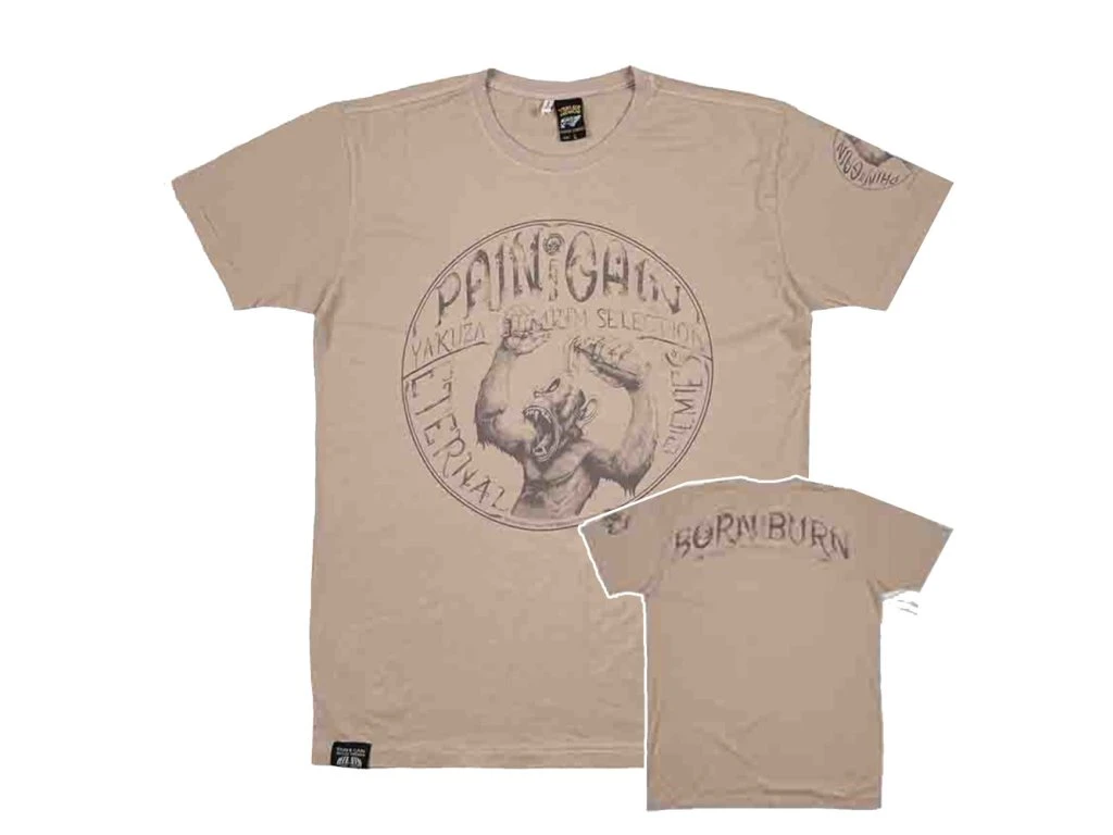 Pánské triko s krátkým rukávem Yakuza Premium Selection je skutečně jedinečné. Hlavní motiv na hrudi tvoří kulatý potisk s nápisy PAIN and GAIN a ETERNAL ENEMIES. Uprostřed je rozzuřený tvor držící v jedné ruce Molotovův koktejl a v druhé zapálenou sirku – symbol vzdoru, připravenosti k akci a rebelského ducha značky. Na rukávu je menší detailní potisk. Zadní část některých variant zdobí velký nápis BORN TO BURN, který podtrhuje odkaz celé kolekce.Kvůli střihu přiléhajícímu k tělu je tričko trochu těsnější, proto si v