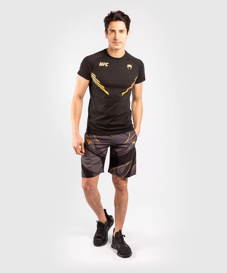 Pánské Fitness šortky VENUM UFC Replica - ChampionSérie Replica je třetí řada autentických produktů od společnosti Venum x UFC. Tyto oblečení s odvážným a silným designem jsou inspirovány oblečeními, které nosí bojovníci během Fight Night. Tréninkové šortky Venum Replica jsou výsledkem spolupráce mezi přední světovou organizací pro smíšená bojová umění UFC a Venum, ikonická a vlivná značka v MMA. Lehké a prodyšné šortky Venum Replica se rychle stanou vašimi. Směs polyesteru a elastanu nabízí optimální volnost pohybu, ideální pro sparing nebo sílu a kondici, šortky Replica zajišťují maximální regulaci vlhkosti.Technické parametry:- 95% polyester - 5% Elastan: pohodlí a odolnost- Kapsy na zip- Elastický pas- Boční rozparky kapsy- VENUM logo.- Nežehlit, Nesušte v sušičceVENUM