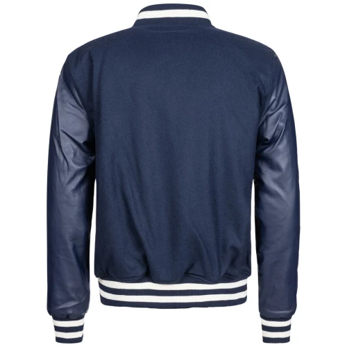 BENLEE Pánská bunda NEWARK - modráPánská baseballová bunda od Benlee má skvělý vzhled! BENLEE Pánská bunda NEWARK v modro červené barvě bez kapuci. Rukávy v koženém provedení, loga na pravé, levé straně.Materiál: 50% vlna, 50% polyester,Paže: umělá kůžeBENLEE