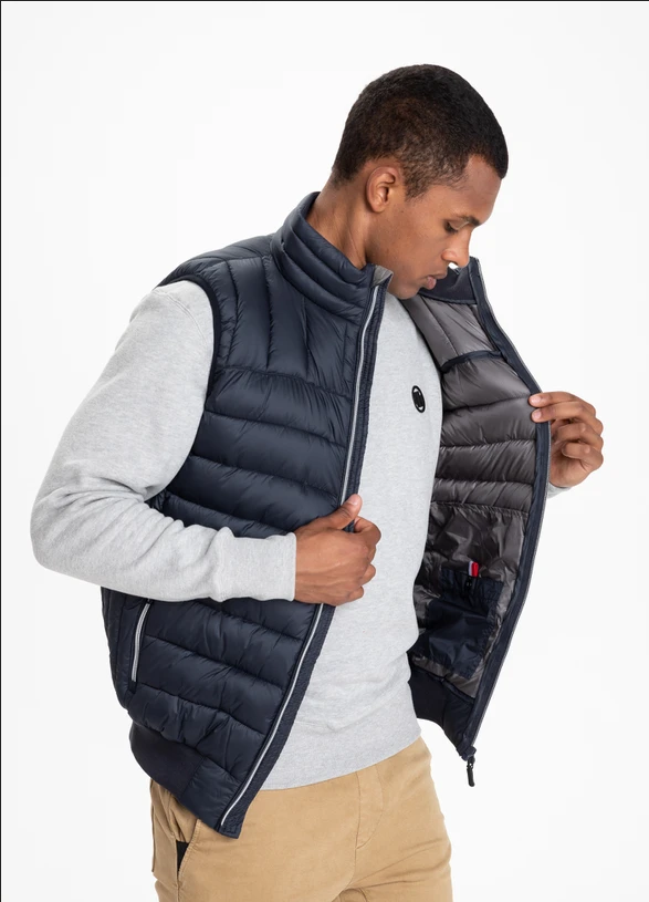 Zimní vesta PitBull West Coast GRANGER- tmavě modráGranger je polyesterová vesta bez kapuce, která je ideální pro podzimní počasí. Zimní vesta PitBull West Coast GRANGER je vyrobená z vysoce kvalitní hladké nylonové tkaniny odolné proti větru, dešti a sněhu.- klasický střih do boků- prošívané a vyrobené z vysoce kvalitní hladké nylonové tkaniny odolné proti větru, dešti a sněhu.- celá vesta je zateplená hladkou prošívanou polyesterovou podšívkou v černé barvě.- vysoký izolovaný límec- dvě boční kapsy na zip- praktická kapsa na knoflíky uvnitř vesty- všechny zipy se snadno otevíratelnými táhly zipů.- silný široký žebrovaný lem ve spodní části vesty- malá silikonová čtvercová nášivka s logem Pit Bull na hrudi- Materiálové složení: vnější strana - 100% nylon / podšívka a výplň - 100% polyesterPitBull West Coast