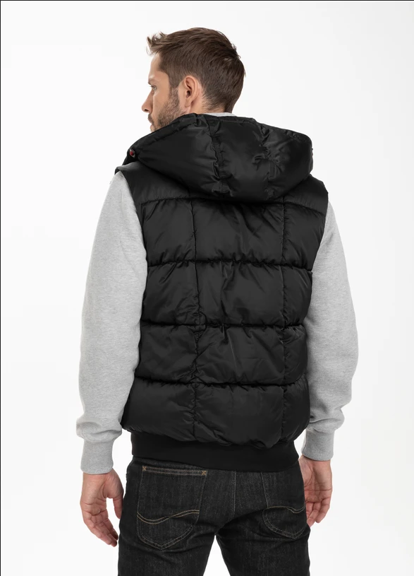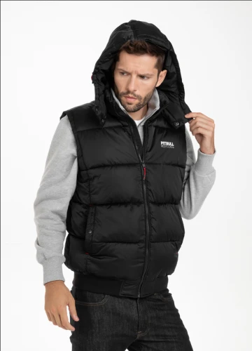 Zimní vesta PitBull West Coast Walpen - černáPánská bunda bez rukávů z nejnovější kolekce PIT BULL WEST COAST - Walpen. Zimní vesta PitBull West Coast je vyrobena z vysoce kvalitní hladké nylonové tkaniny odolné proti větru, dešti a sněhu. Celá vesta je zateplená hladkou černou polyesterovou podšívkou.- klasický střih na boky- prošívané a vyrobené z vysoce kvalitní hladké nylonové tkaniny odolné proti větru, dešti a sněhu.- celá vesta je silně vycpaná hladkou polyesterovou podšívkou v černé barvě.- zateplená odnímatelná kapuce, nastavitelná pomocí elastické šňůrky se zátkami a dodatečnou ochranou proti chladu pomocí stiskacích cvočků.- vysoký izolovaný límec- dvě boční kapsy se zapínáním na druky- zip se snadno otevíratelným zipovým štítkem - praktická kapsa na suchý zip na vnitřní straně vesty.- malý potisk Pit Bull West Coast na hrudi- silný široký žebrovaný lem ve spodní části vesty- složení vnější tkaniny: 100% nylon / podšívka a výplň: 100% polyesterPitBull West Coast