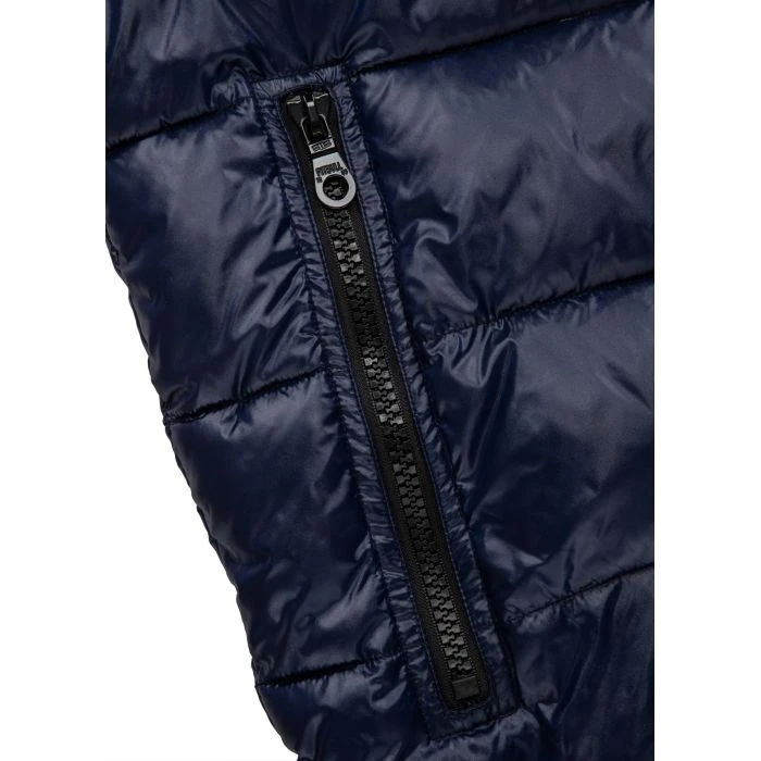 PitBull West Coast - zimní bunda Shine - tmavě modráBunda Pitbull West coast Shine v tmavě modré barvě. Bunda s kapucí má zapínání na zip. Bunda Pitbull je vyrobena z vysoce kvalitní prošívané nylonové tkaniny odolná proti dešti, sněhu a větru. Materiál je hladký, měkký a mírně lesklý. Bunda PitBull má dvě boční kapsy na zip. Celá bunda je izolována polyesterovou podšívkou. Parametry:Materiál: složení vnějšího materiálu: 100% nylon / podšívka a náplň: 100% polyesterRozměr A B CS 69 CM 58 CM 69 CMM 71 CM 60 CM 70 CML 73 CM 64 CM 71 CMXL 75 CM 66 CM 72 CMPitBull West Coast
