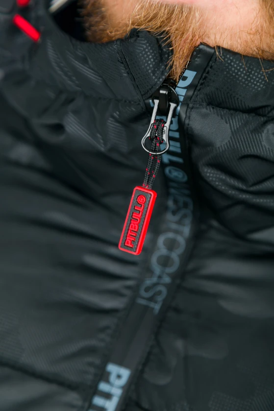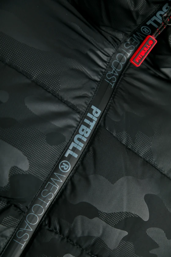Zimní bunda Pitbull West Coast AIRWAY 3 - all black camo Zimní bunda Pitbull West Coast AIRWAY 3 v černé barvě. Zimní bunda je vyrobena z vysoce kvalitní nylonové tkaniny odolné vůči větru, dešti a sněhu.- klasický sportovní střih- prošívané a vyrobené z vysoce kvalitní nylonové tkaniny odolné proti větru, dešti a sněhu.- plně zateplený s kontrastní polyesterovou podšívkou- zateplená kapuce nastavitelná pomocí elastické šňůrky se zarážkami- vysoký límec chránící před chladem- dvě boční kapsy se zipy a klopami- vnitřní kapsa na telefon a doklady se zapínáním na patentku- hlavní zip s potištěnou voděodolnou klopou- všechny zipy mají taháčky pro snadné rozepnutí.- manžety nastavitelné pomocí praktických pásků na suchý zip- silikonová nášivka s logem Pit Bull na hrudi- bohaté na detaily a kontrastní povrchové úpravy- složení vnější tkaniny: 100% nylon / podšívka a výplň: 100% polyesterPitBull West Coast
