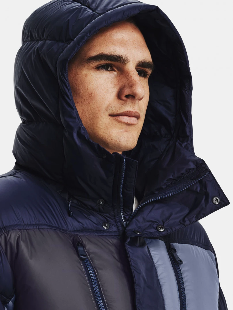 Bunda Under Armour CGI Down Blocked - modráBunda Under Armour CGI Down Blocked v modré barvě. Bunda UNDER ARMOUR je z lehké a odolné tkaniny s technologií UA Storm a izolací Allied z kachního peří pro pohodlný pocit z nošení i za nepříznivých podmínek. - Technologie UA Storm odpuzuje vodu, aniž by byla snížena prodyšnost.- Izolace z kachního prachového peří Allied poskytuje extrémní teplo a pochází z etických zdrojů, které lze sledovat pomocí visačky.- Infračervená podšívka ColdGear využívá měkký, tepelně vodivý povlak, který absorbuje a udržuje tělesné teplo.- Prostorná kapuce s nastavitelnou gumičkou a prodlouženým lepeným okrajem.- Celopropínací zip s klopou Storm.- Bezpečné kapsy na ruce a na hrudi na zip.- Tkaná nášivka s logem na levém rukávu.Under Armour