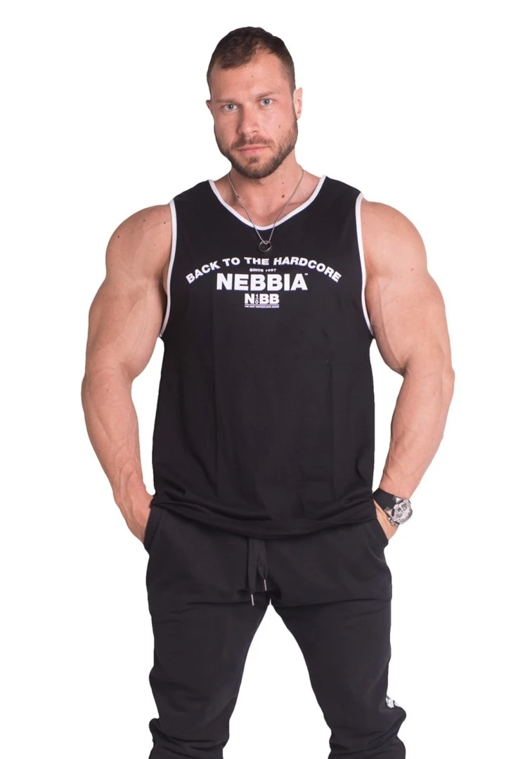 Pánské HARDCORE tílko s lemováním NEBBIA 395 - černéZpět ve hře s novou Hard Core kolekcí pro opravdové muže! Pánské tílko Nebbia v černé barvě. Pohodlné tílko skvělé na cvičení s kontrastním lemováním a jemně prodlouženou spodním částí. Střih a potisk na hrudi a zádech vyvolávají mírný retro dojem. Vyrobeno ze 100% bavlny pro maximální pohodlí při cvičení, ale i při běžném nošení. NEBBIA