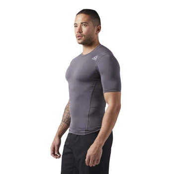 Pánské kompresní tričko Reebok WOR SL SS SLD COMP - šedéPánské kompresní tričko Reebok WOR SL SS SLD COMP s krátkým rukávem v šedé barvě. Kompresní tričko Reebok oceníte především při Vašem náročném tréninku. Kompresní funkce podporuje svalstvo. Odvod přebytečného tepla od pokožky zajišťuje technologie PlayDry. Vlastnosti produktu:- 84% polyester / 16% elastan- Elastická páska podél bočního švu a přes zadní stranu pro strukturu- Síťové vložky na zadní straně a podpaží pro lepší ventilaci- PlayDry tech- Kompresní fit Reebok