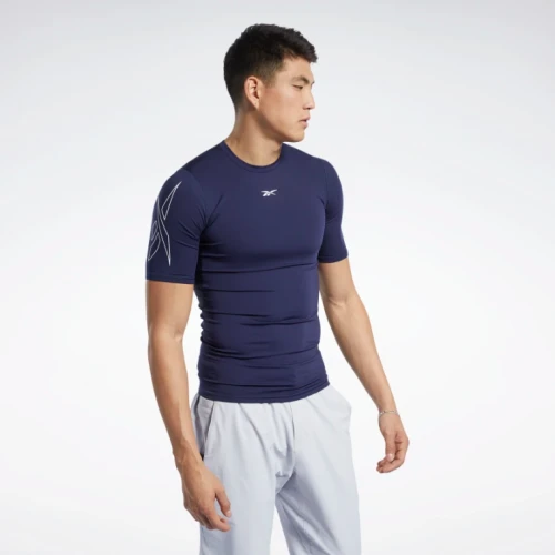 REEBOK Kompresní triko Fitness Compression Tee SS - modrý