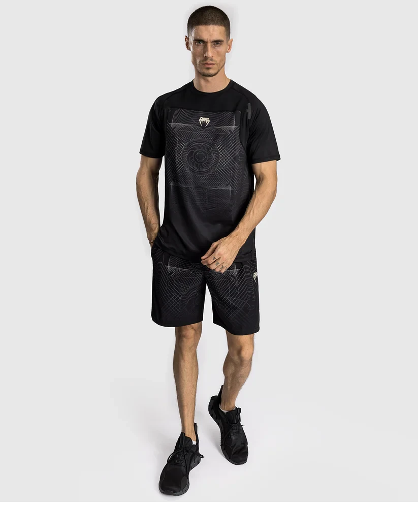 Funkční triko VENUM G-Fit Air Dry-Tech Kr.rukávem - černo/sandTričko Venum G-Fit Air Dry-Fit je lehké výkonné tričko navržené pro vaše pohodlí a naprostou volnost pohybu. Technologie Dry-Tech a síťované panely slouží k odvádění vlhkosti a zajišťují, že zůstanete v pohodě i při tom nejintenzivnějším tréninku. Perforované detaily na zádech nabízejí další větrání. Díky sportovnímu střihu a strečovému materiálu je toto tričko s výstřihem ideální pro bojové sporty i silový trénink.- Technologie Dry tech,- sportovní úzký střih,- Krátké rukávy,- Kulatý výstřih,- Plynulá strečová tkanina pro pohodlí a volnost pohybu,- Ideální pro silové a kondiční nebo bojové sporty,- Sítotiskem vytištěné logo, - Sublimované vzory,- Praní za studena (na 30 °C),- Prát s podobnými barvami,- Nesušte v sušičce,- Nebělit,- Nežehlete.VENUM