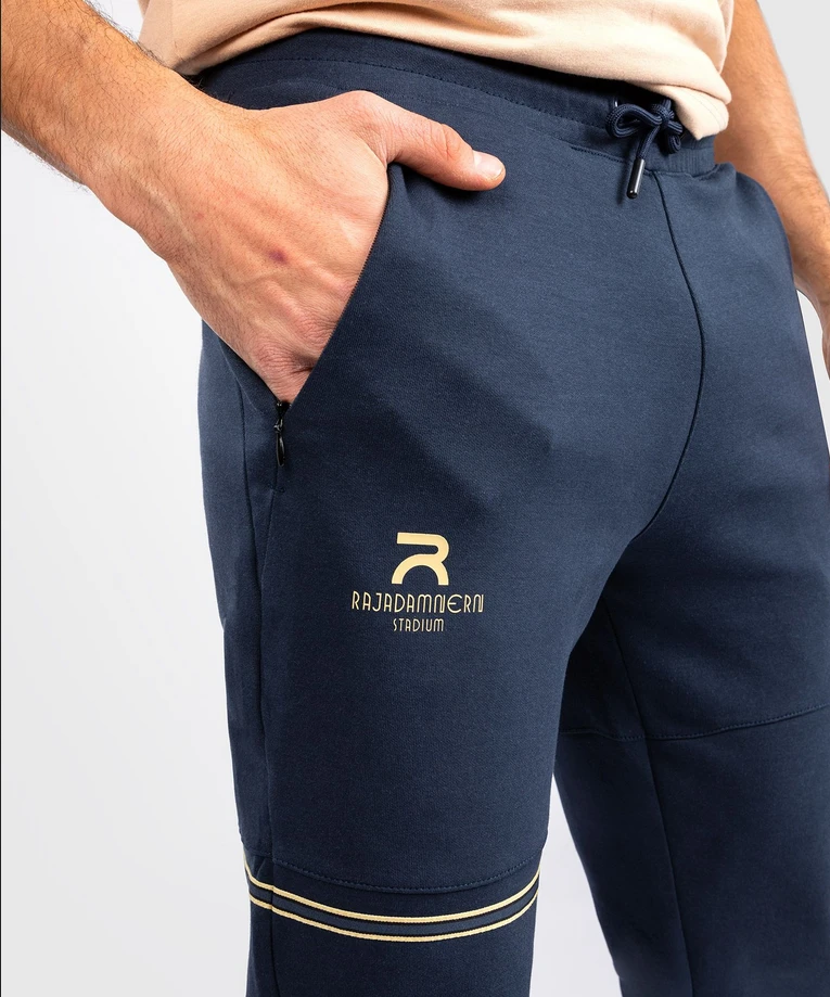 Pánské tepláky VENUM RAJADAMNERN x - modréTepláky Venum x RAJADAMNERN. Kolekce věnovaná tomu nejlepšímu z Muay Thai. Společnost Venum s potěšením navázala spolupráci s bangkockým boxerským stadionem Rajadamnern. Ten byl postaven v roce 1945 a slouží jako prestižní a historická scéna pro nejlepší světové bojovníky Muay Thai. Tyto tepláky jsou vyrobeny z měkké a pružné směsi prvotřídní bavlny, umožňují vám pohyb v naprostém pohodlí. Jsou ideální na rozcvičku nebo jako součást každodenního šatníku! Vlastnosti produktu:- Přiléhavý střih- Zesílené švy- Nastavitelný pas se stahovací šňůrkou- Dvě boční kapsy se zapínáním- Elastické kotníky- Sublimované vzory- Praní na 30°VENUM