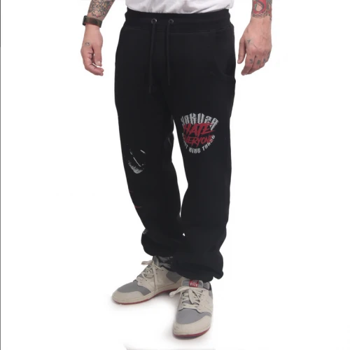Yakuza Pánské tepláky Hate Loose - černéYakuza Pánské tepláky Hate Loose v černé barvě. Yakuza Pánské tepláky Hate Loose mají volný střih pro mimořádně ležérní styl. Tepláky jsou doplněny mimořádně měkkou podšívkou, nastavitelným pasem se stahovací šňůrkou, elastickými manžetami, dvěma předními prostřiženými kapsami a zadní kapsou. Jsou také opatřeny vintage potiskem a štítkem s logem Yakuza na zadní straně.- Materiál: 70 % bavlna, 30 % polyester- Modelk je vysoká 1,82 m a nosí velikost M.Yakuza