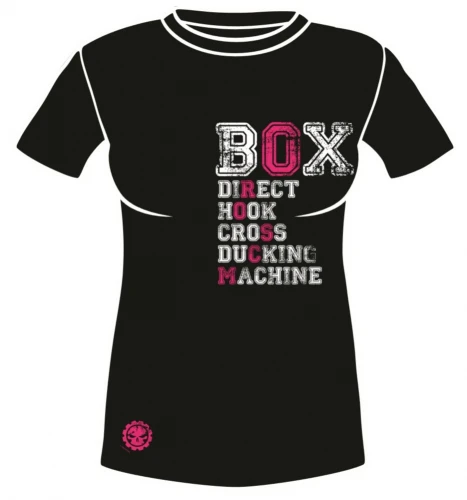 Dámské tričko s motivem BOX v černém provedení. Machine tričko pro ženy z Fight Serie triček pro milovnice BOXu. Tričko Machine BOX v bílé barvě pro všechny bojovnice a boxérky.