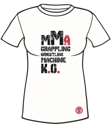 Dámské tričko s motivem MMA. Machine tričko pro ženy z Fight Serie triček pro milovnice MMA. Tričko Machine MMA v bílé barvě pro nutnost pro všechny bojovnice. MMA Fighterky