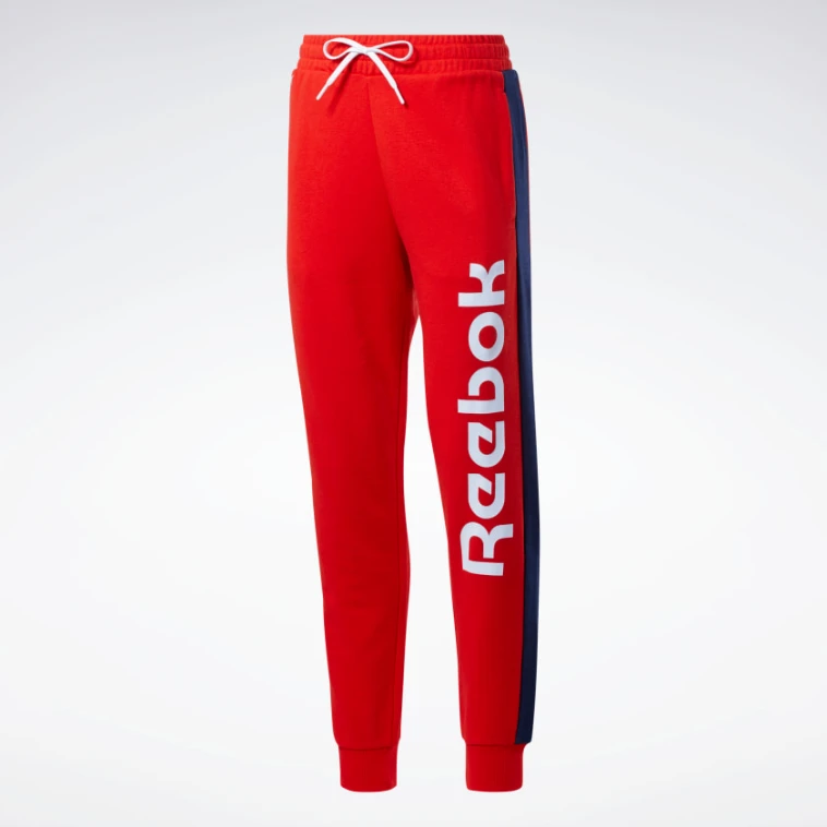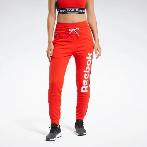 REEBOK Dámské tepláky Training Essentials Linear - červenéREEBOK Dámské tepláky Training Essentials Linear v červené barvě. Tepláky Reebok jsou vyrobeny z kvalitního materiálu. Na levé straně logo REEBOK. Vlastnosti produktu:- 80% bavlna / 20% polyester- Slim fit- Pas s nastavitelným stahovacím pásem- Logo REEBOKReebok