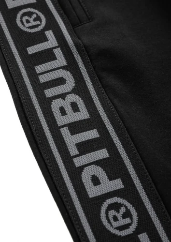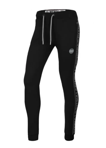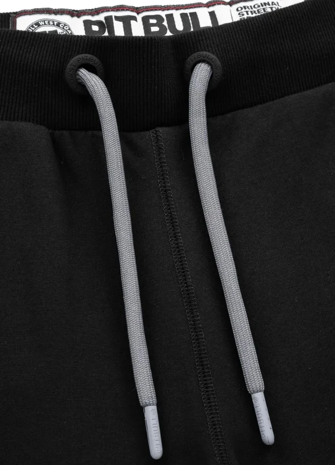 Dámské tepláky PitBull West French Terry Ballina - černéPitbull West Coast French Terry kolekce - tepláky Ballina jsou vyrobeny z vysoce kvalitní francouzské froté bavlny s hmotností 330 g/m2. Tkanina je z vnějšku plochá a hladká a zevnitř má charakteristickou měkkou vazbu. Materiál dokonale absorbuje vlhkost, díky čemuž zaručuje plné pohodlí nošení v teplejších dnech. Díky přidání elastanových vláken se lépe přizpůsobí postavě a neomezuje v pohybu, odolnost proti roztažení. Po boku celé délky nohavic jsou tkané žakárové pruhy s nápisem PitBull. Tepláky jsou ukončeny žebrovanými náplety na spodní části nohavic, mají široký elastický žebrovaný pás s nastavitelný šňůrkou , malé kulaté silikonové logo značky Pit Bull na levé nohavici a dvě boční kapsy uzavíratelné zipem . Složení: 95% bavlna, 5% elastanPitBull West Coast