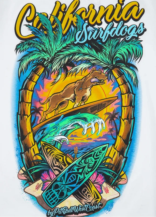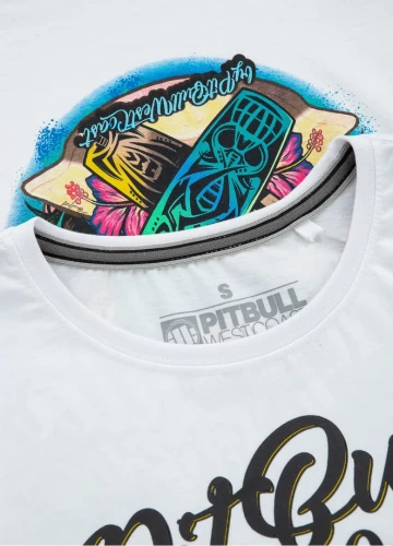 PitBull West Coast Dámské triko Surfdog - bíléDámské tričko z nejnovější kolekce PIT BULL WEST COAST - Surfdog. Dámské tričko je vyrobeno z nejkvalitnější bavlny o hmotnosti 190 g / m2. Měkký lem na vnitřní straně límce na ochranu proti oděru.Vlastnosti Produktu:- Úzký střih pro ženskou siluetu- klasický kulatý výstřih- Tričko z nejkvalitnější bavlny 190 g/m2- měkké lemování na vnitřní straně límce, které chrání před odřeninami.- velký potisk na zádech a menší potisk na hrudi- velká tkaná nášivka s logem značky PIT BULL WEST COAST na spodní části trička.- malá tkaná nášivka na okraji levého rukávu.- Barva trička: bílá- složení tkaniny: 100% bavlnaPitBull West Coast